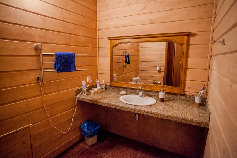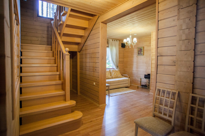 Все комнаты выполнены в единой стилистике под дерево приятных светлых тонов. В спальнях и гостиной установлены панорамные окна с видом на озеро и окрестности. Для создания еще большего уюта и приятной домашней атмосферы в обеденной зоне есть полностью оборудованная техникой и посудой кухня и место для отдыха у камина. Также, не выходя из коттеджа, для Вас подготовлена сауна. В нашем доме с заботой установлены теплые полы, а перед коттеджем есть мангал, стоянка и летний бассейн!